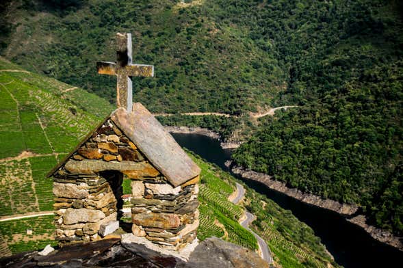 Además, pasaremos por el camino Souto de Valguaire y sus castaños centenarios, y nos detendremos en el mirador Pena do Castelo, desde donde admiraremos la panorámica del cañón del Sil, ¡una postal realmente extraordinaria! Junto a la capilla de San Amaro, tomaremos un pícnic que estará compuesto de productos típicos que acompañaremos con vinos de la Ribeira Sacra.