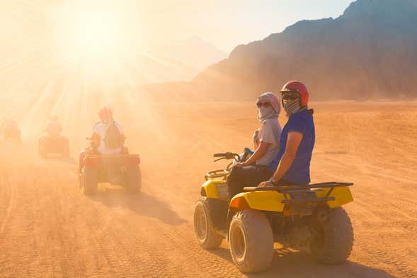 Tras pasar a recogeros por el hotel a las 15:00 horas, dejaremos atrás la ciudad para adentrarnos en el desierto del interior del país. Nada más llegar, nos pondremos el casco y las gafas de seguridad y el guía nos dará una breve introducción sobre el manejo de los quads. Finalizada la clase será el momento de ponernos en marcha. ¿Estáis listos para la aventura?
