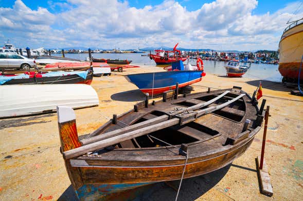 A continuación, nos desplazaremos al barrio marinero de Peralto, donde veremos la particular estructura de sus calles que bajan al puerto. Siguiendo esta ruta llegaremos a la playa de Confín, en la que conoceremos la actividad marisquera de El Grove y observaremos el puente que lleva a la isla de La Toja.