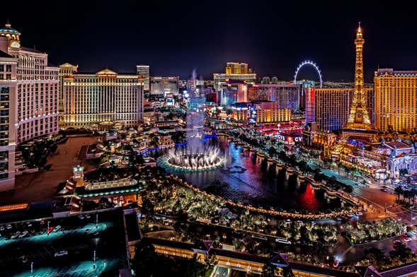 Además, desde la puesta de sol hasta la medianoche, la Torre Eiffel del hotel Paris Las Vegas ofrece cada 30 minutos un espectáculo audiovisual en el que el monumento se ilumina de vivos colores.