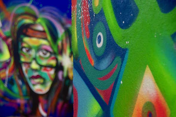 Continuaremos avanzando hasta la parte más alternativa de la ciudad. Los innumerables grafitis que llenan las fachadas de los edificios forman unos murales emblemáticos donde los artistas dejan su huella. VHILS, Godmess, Akacorleone, Leonor Brilha, Mariana Dia Coutinho o Acer entre muchos otros serán algunos de los nombres de artistas callejeros que conoceremos a lo largo de la visita guiada.