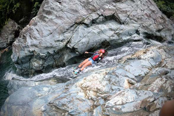 En esta ruta de barranquismo atravesaremos ríos, piscinas naturales y cascadas, saltaremos desde rocas, nos deslizaremos por toboganes de piedra y nos relajaremos en plena naturaleza. Sin duda, pasaremos un día lleno de aventuras en el Parque Nacional El Yunque.