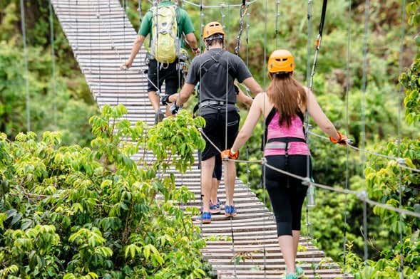 Tras una breve charla de seguridad, nos pondremos el equipo y caminaremos hasta la zona donde nos esperan varias puentes colgantes. Durante la caminata, tendremos unas magníficas vistas del bosque tropical puertorriqueño en todo su esplendor.
