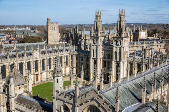 Empezaremos la ruta recorriendo los alrededores de la Universidad de Oxford, una de las más prestigiosas del mundo. Repasaremos la historia de esta célebre institución de origen medieval mientras paseamos entre sus edificios históricos más representativos. Uno de ellos es la Cámara Radcliffe, que custodia una de las bibliotecas más importantes de la ciudad.