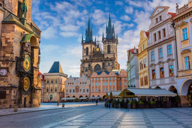 Continuaremos el paseo en la plaza de la Ciudad Vieja. En esta explanada contemplaremos la fachada de la imponente iglesia de Týn y veremos el Reloj Astronómico de Praga, situado en el edificio histórico del Ayuntamiento. ¿Sabéis por qué es tan popular? ¡Lo descubriremos!