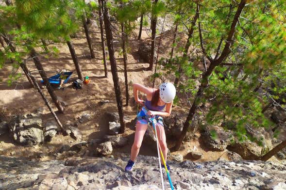 Escalada junto al Roque Nublo al atardecer