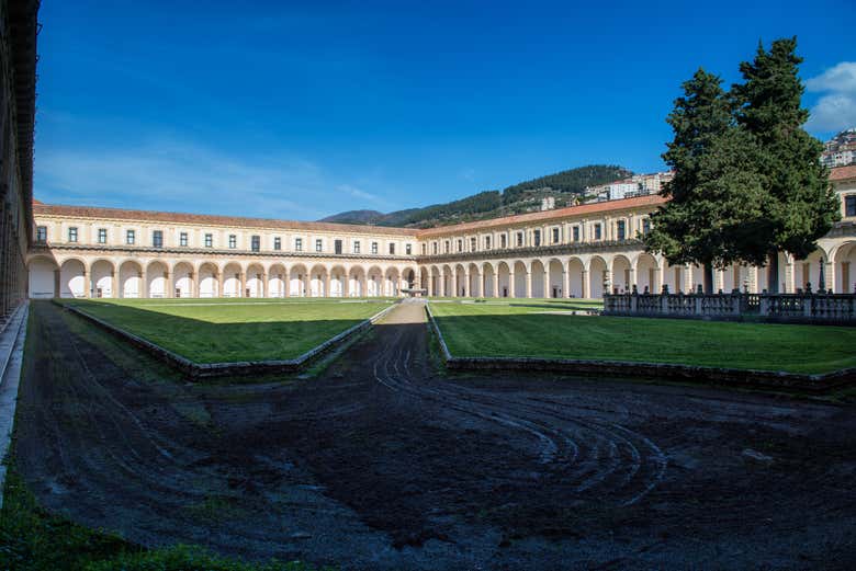 Também contemplaremos o Grande Claustro do Mosteiro de Padula, um amplo espaço que cobre uma área total de 15.000 metros quadrados. Você ficará impressionado com o tamanho desse lugar único!