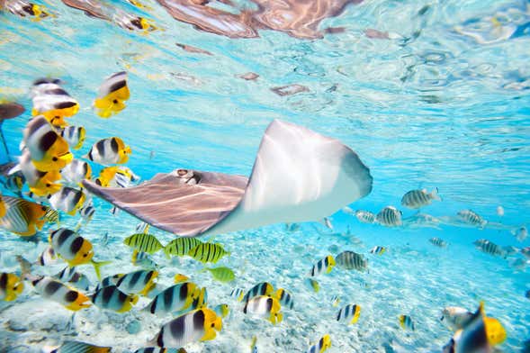 Depois de nadar com os tubarões, o levaremos para apreciar os jardins de coral, dando continuidade à nossa prática de snorkel enquanto admiramos a grande biodiversidade que esconde o fundo do mar de Bora Bora. Inúmeros peixes tropicais e enormes corais lhe farão companhia enquanto você nada nas águas de Tooupa.