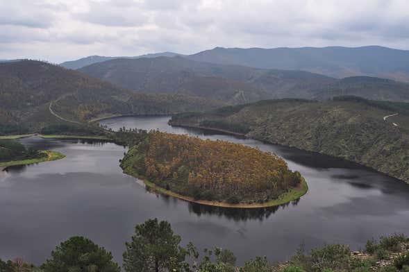 Nos encontraremos à hora indicada no cais de Ceclavín e pegaremos um barco que nos levará pelo rio Alagón, o afluente mais longo do Tejo. Esse rio nasce em Castela e Leão e desemboca na barragem de Alcántara, onde também chegaremos com o passeio de barco!