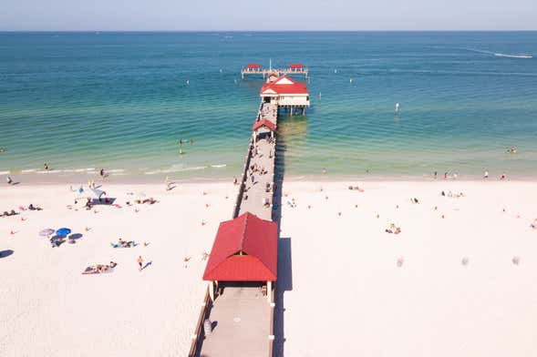 Se você quiser fazer outro tipo de programa, encontrará várias lojas de souvenirs e cafés ao longo do passeio marítimo. Você também não pode deixar de conhecer o Píer 60, um cais que vai oceano adentro e do qual se podem apreciar magníficas vistas da costa. Compras, passeios de bicicleta, esportes aquáticos... Clearwater Beach oferece entretenimento para todos os gostos, você escolhe!