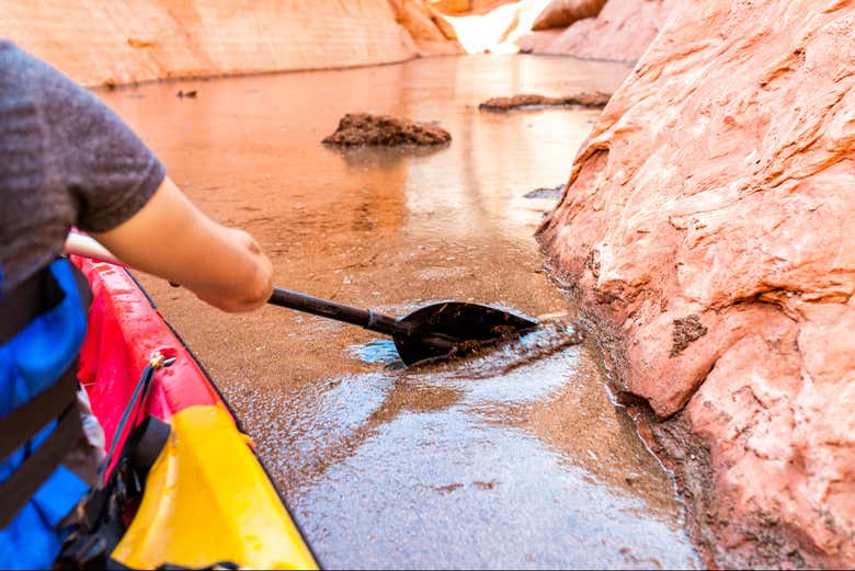 Ao chegarmos, receberemos todo o equipamento necessário para a atividade e, após uma breve instrução sobre o manuseio das embarcações, iniciaremos a rota de caiaque. Durante a atividade, remaremos pelas águas calmas do lago Powell para admirar as enormes paredes do Antelope Canyon de uma perspectiva única.