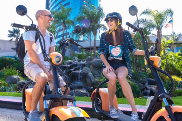 Nos reuniremos na Mason Street na hora que você escolher. Receberemos uma breve explicação por parte do instrutor e subiremos nas motos elétricas, a combinação perfeita entre motocicleta e patinete elétrico. San Diego sobre rodas!