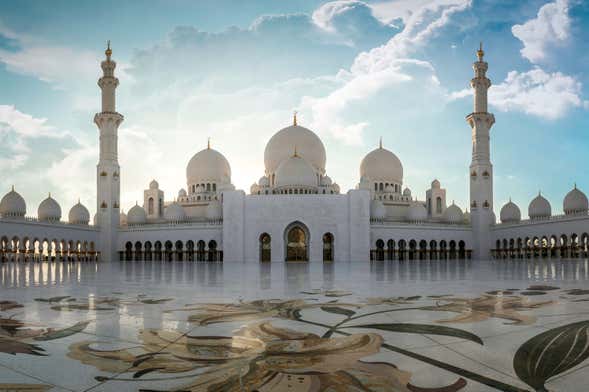 The tour begins with a visit the jewel of the city, the Sheikh Zayed Grand Mosque, the most impressive mosque in the world and one of the largest. We'll make our way inside to discover its grandeur and then the tour continues along the seafront: a promenade eight kilometers long which takes in beaches, parks, cafés and restaurants.