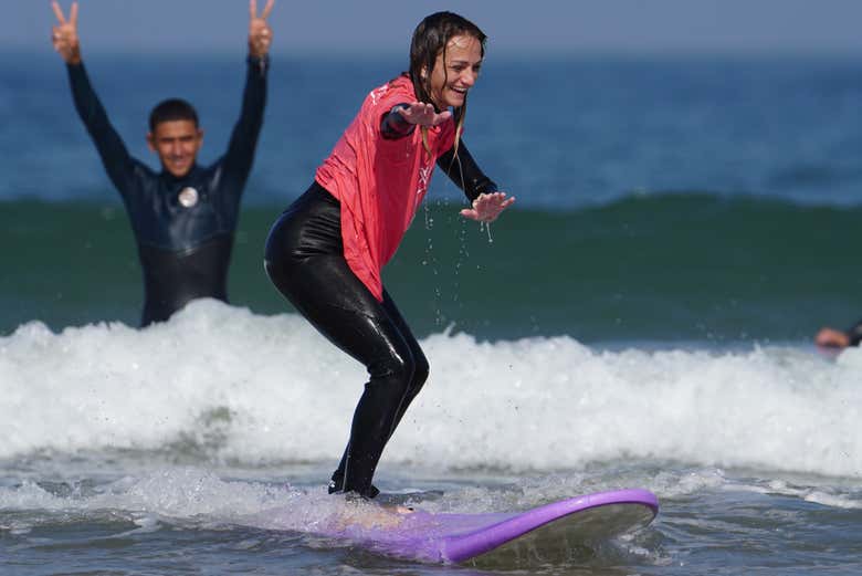 In the afternoon, we'll meet again for the second session of the surfing course. This time, we'll put into practice everything we've learnt in the morning by riding the waves of the Atlantic. It will be so much fun!