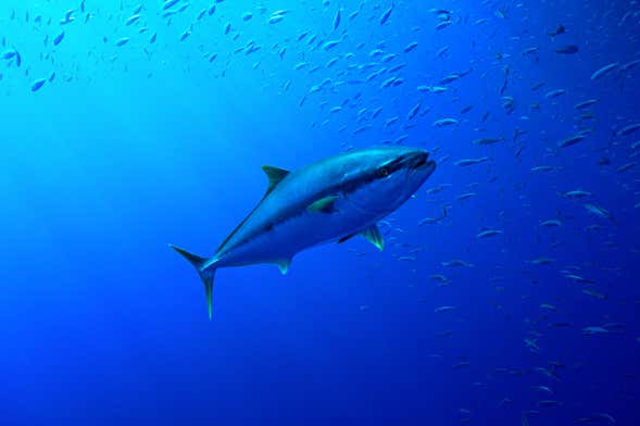 When we reach the bluefin tuna pools, we'll drop anchor so you can observe the fish that live in this facility. Around 300 tuna specimens live here, and they can grow up to 8 feet (2.5 metres) in length and weigh up to 330 pounds (250 kilograms or 23 stones 8 pounds)