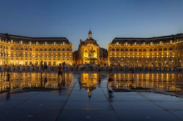 We'll walk along the Rue Sainte Catherine, one of the most important thoroughfares of the French city, and arrive at the Place du Parlement, one of the most important sites in the city since the year 1952. Another highlight of this night tour of Bordeaux will be the Place de la Bourse, where we'll get great views of the Garonne River and the famous Water Mirror.