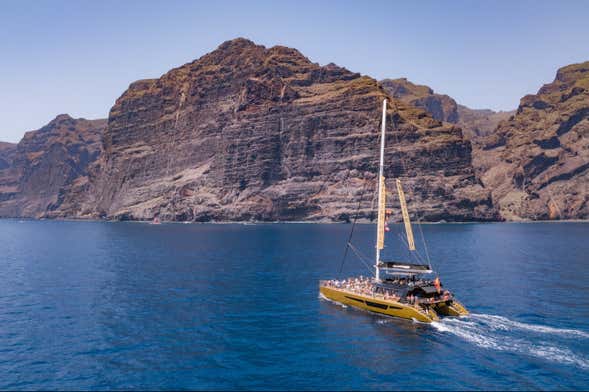 As you sail around looking for these incredible animals, you'll learn interesting facts about the different species of marine life that inhabit the waters along the rugged cliffs of Los Gigantes. Watch as pilot whales, common bottlenose dolphins and spotted dolphins swim alongside the catamaran to make friends - don't forget to say hello!