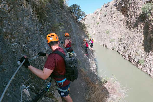 Let's get started! We'll follow a route with clamps and fixed ropes as we navigate our way around faults and steep walls that tower at around 330 feet (100 metres) high. You'll also gaze out at breathtaking views of the Almadenes Gorge and the Quípar River.