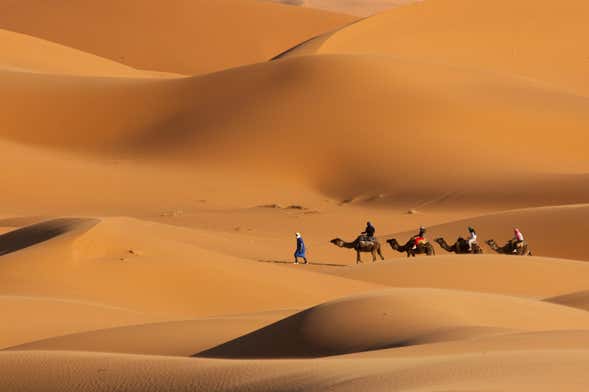 Having picked you up from your hotel, we'll hit the road, toward the Dubai desert. In this calm sea of sand, we'll meet the friendly camels which will take us through the dunes as the sun sets, traveling 40 minutes by camel, and stopping at the midpoint to take in the sunset in this magical environment.