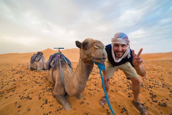 The tour will continue by traversing the Ziz valley and gorges until we reach Erfoud. That evening, we'll enjoy a camel ride through the Merzouga desert. You'll adore the landscape! If you wish, you can also enjoy an optional quad tour.