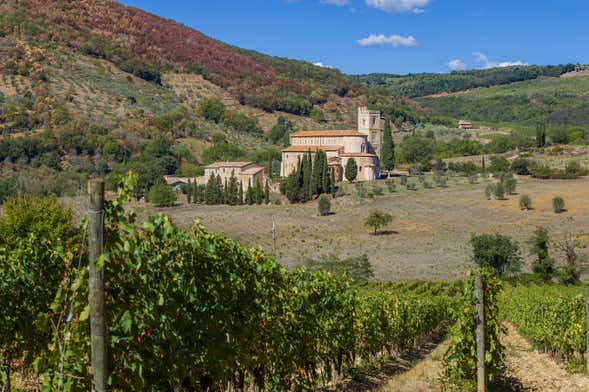 At the end of the tour of Montalcino, you'll get in your car and follow the guide, who will drive their own vehicle, to the Abbey of Sant'Antimo, just 15 minutes away.