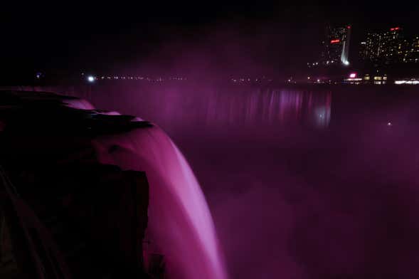 Between May and October, depending on the weather conditions and on specific days of the year, a firework show will be held at Niagara Falls. If you reserve a tour during this time or if this activity happens on the day of your tour, we'll end the tour at a viewpoint to admire the firework show that will light up the night sky.