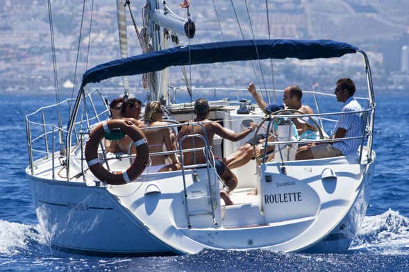 Board a sailing yacht with a maximum capacity of 10 guests from jetty 5 in Puerto Colón, Costa Adeje.
