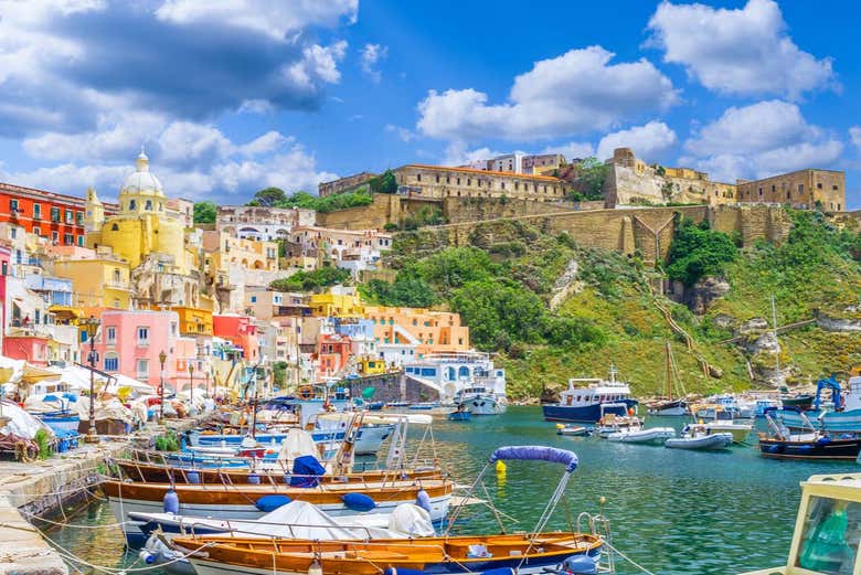 We'll start our visit with a walk in Marina Corricella, the oldest village in Procida. Without a doubt, it's the perfect place to admire the typical fishermen's houses. From here, we'll start our walk towards the highest point of the island: Terra Murata, a medieval village where time seems to have stood still, and from where you'll enjoy an incredible view. Don't forget to take a few pictures!
