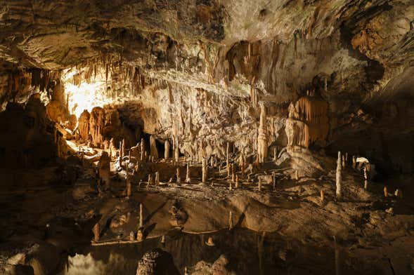 To fully explore the cave, we'll hop on a little train that will take us to the areas not accessible on foot. On this very unique mode of transport, we'll admire places such as the Murano glass chandeliers and the ballroom. And we'll even get to see olms, also known as the 'dragon's offspring'.