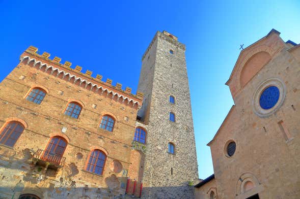 Continuing on, the tour will take you to admire the exterior of the Palazzo Comunale, which has a very special connection to the famous Florentine poet Dante Alighieri. Then we'll reveal interesting details as we admire the facade of the Collegiate Church of Santa Maria Assunta, flanked by Torre Grossa, the highest tower in San Gimignano.