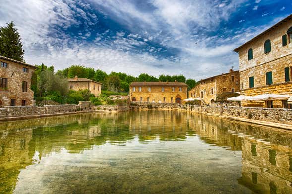 At the end of the private tour of San Quirico d'Orcia, you'll take your own vehicle or use public transport to reach Bagno Vignoni, an ancient medieval village located just 6 kilometers away.