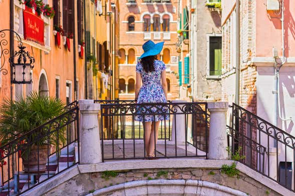 First, we'll enter the Doge's Palace, where we'll stroll through the rich rooms from which the powerful Doge of Venice decided the fate of the duchy. On this visit, we'll delve into an era of magnificence and opulence, climbing golden staircases and admiring the works of art of famous painters such as Titian and Tintoretto. Then, we'll go down to the dungeons, where the convicts were taken through the Bridge of Sighs. This is where we'll reveal which prominent figures were imprisoned in their cells.