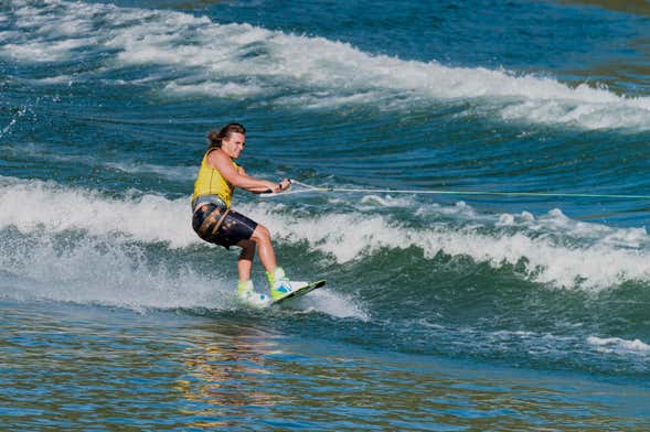 For this activity, you'll have both feet attached to a single board on which you'll be able to perform all kinds of turns, jumps, and acrobatics. Are you up to the challenge? And if you fall into the water, you can always try again!