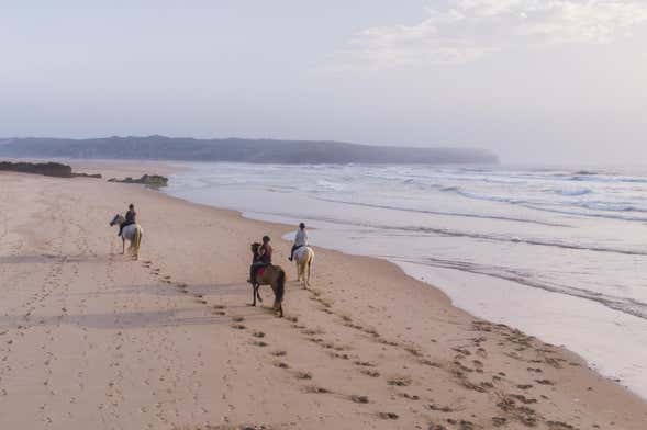 Paseo a caballo por la playa de Bordeira al atardecer