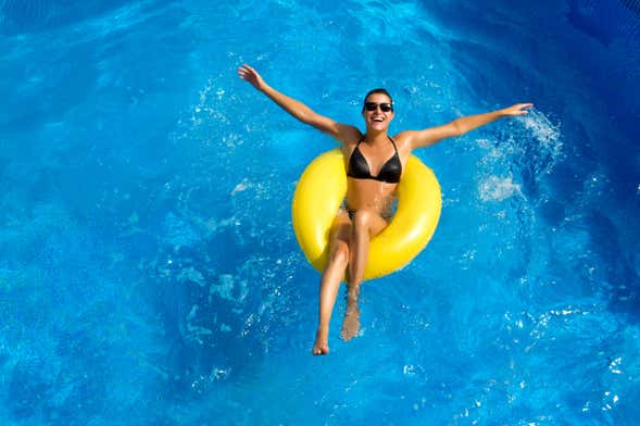 Durante vuestra visita, podréis competir en los cinco toboganes de la Multipista, relajaros en la piscina de hidromasaje, poner a prueba vuestro vértigo desafiando la gravedad en el Kamikaze y subir en un flotador para recorrer el río lento.