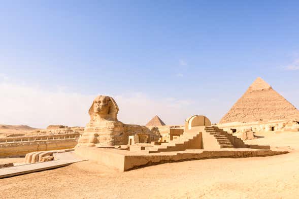 Tras desayunar en el hotel de El Cairo nos dirigiremos hacia las Pirámides de Giza para admirar los mausoleos de Keops, Kefrén y Micerinos. Nos adentraremos en el segundo para conocer la historia de este importante faraón. Además, nos acercaremos hasta la célebre Gran Esfinge de Giza para apreciar de cerca su colosal tamaño.