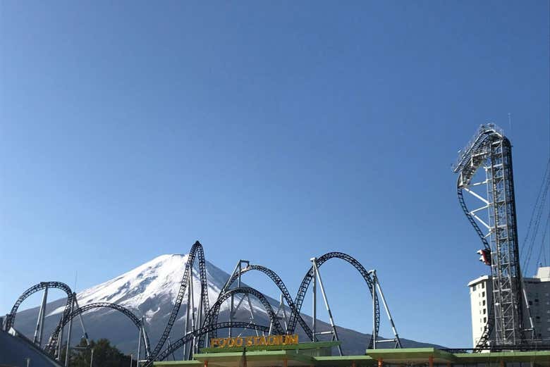 El parque de atracciones con vistas al Monte Fuji