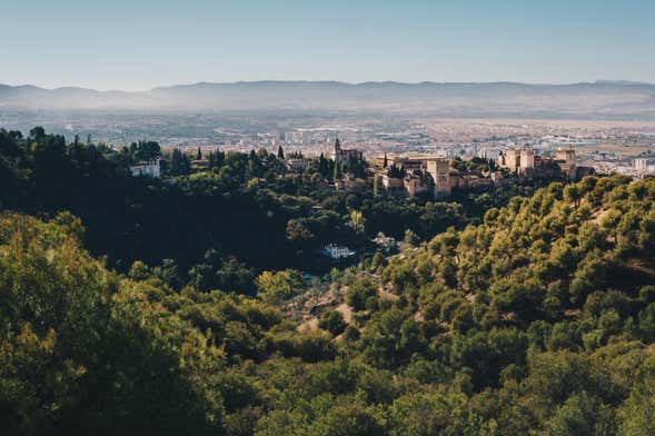 Después atravesaremos la puerta de las Granadas, desde donde veremos las imponentes Torres Bermejas en lo alto de la colina. ¡Momento foto!