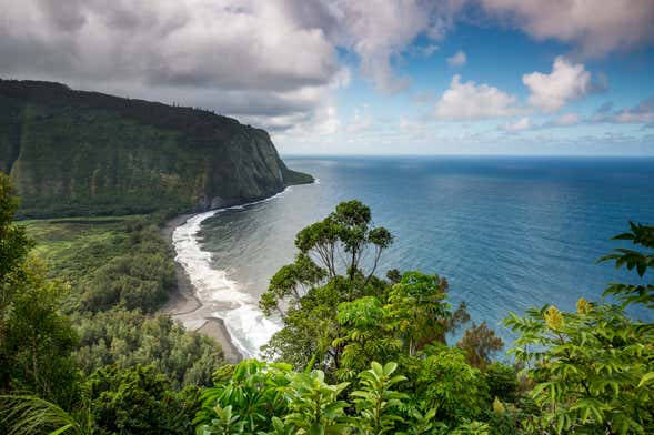 Después, nos espera una caminata por la Caldera de Cráteres, donde veremos secciones completamente cubiertas de lava expulsada por el volcán Kilauea en el año 2018. A continuación, nos acercaremos al mirador de Kealakomo, el punto perfecto para divisar la costa y los campos de lava.