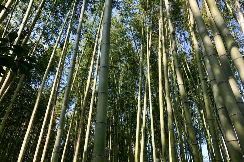 Tras conocer cada rincón del Pabellón Dorado, nos dirigiremos hacia Arashiyama, una de las zonas más pintorescas de Kioto. Caminaremos por el famoso bosque de bambú que recubre esta área, donde los altos tallos crean un entorno mágico. ¡Os encantará explorar sus senderos y contemplar la belleza de la naturaleza!