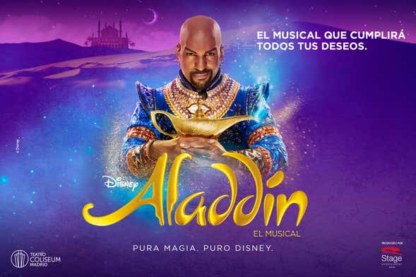 Más de 14 millones de espectadores de todo el mundo ya han disfrutado de las aventuras de Aladdín, Jasmine y el Genio, y ahora os toca a vosotros. El célebre musical de Disney aterriza en Madrid para llenar el teatro Coliseum y la Gran Vía de sueños e ilusión.