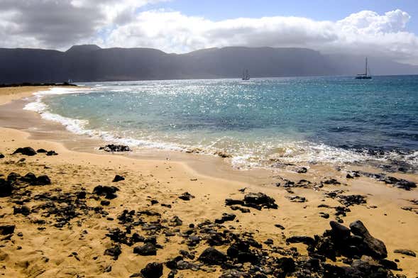 Al embarcar disfrutaremos de un mojito y un pincho de tortilla de bienvenida. Poco después fondearemos en Playa Francesa, una de las ensenadas más bonitas de La Graciosa. Sus aguas turquesas y su arena dorada convierten a este lugar en todo un paraíso natural.