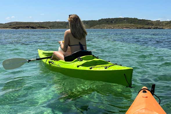 A la hora que escojáis, nos reuniremos en la avenida Port d'Addaia. Una vez allí, os entregaremos los kayaks con los que surcaremos el litoral del este de Menorca hasta alcanzar el Parque Natural de Mongofre.