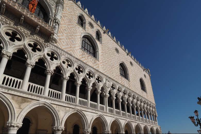 El edificio es de estilo gótico veneciano, en el que se incorporan también elementos bizantinos. ¿Sabíais que se considera uno de los mejores ejemplos de arquitectura palaciega veneciana? Además, fue un auténtico símbolo de poder. Desde allí, 120 dogos dirigieron el destino de Venecia durante casi 1000 años.