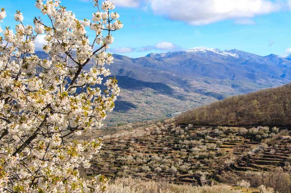 Vous entrerez dans le cadre captivant des cerisiers de la vallée du Jerte. Leur floraison au printemps est un spectacle pour les sens, car le doux parfum de leurs pétales est complété par la belle couleur blanche des fleurs. Et si vous ajoutez à tout cela la délicieuse saveur de la cerise d'Estrémadure, vous obtenez une combinaison parfaite. La vallée se pare donc de ses plus beaux atours entre mars et avril, période idéale pour profiter de ses merveilles naturelles.