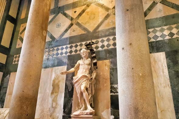 Vous y entrerez par une réplique de la Porte du Paradis pour admirer les incroyables mosaïques byzantines de la coupole du Baptistère. Vous passerez en revue les origines de ce monument qui aurait été dédié à Mars, le dieu de la guerre romain.