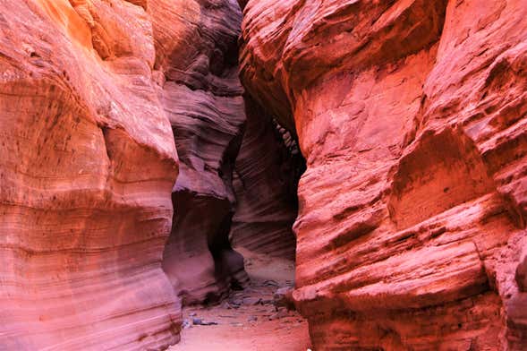 Vous accéderez au canyon de Peek A Boo par un chemin de terre, puis par une courte section à travers des dunes de sable. Vous serez émerveillés par les paysages de grès rougeâtre de cette gorge, qui atteint 30 mètres de profondeur à certains endroits.