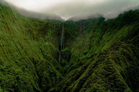 Vous passerez également par le canal de Pailolo et verrez Elephant Rock, un autre monument naturel impressionnant que vous pourrez admirer depuis l’hélicoptère. Vous verrez également d'autres sites emblématiques de Molokai tels que le North Point, les immenses cascades de la vallée de Halawa et les récifs coralliens.