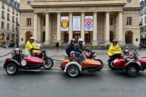 Vous verrez l'emblématique Moulin Rouge et le Moulin de la Galette, une célèbre salle de danse de la Belle Époque. De plus, vous monterez en side-car jusqu'à la basilique du Sacré-Cœur et passerez devant les vignobles du Clos Montmartre sur le chemin du retour.