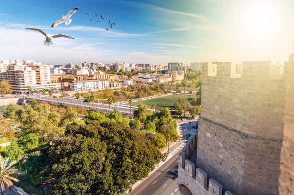 À l'heure prévue, rendez-vous aux Tours de Serranos, où vous commencerez ce free tour à vélo dans Valence. C'est parti !